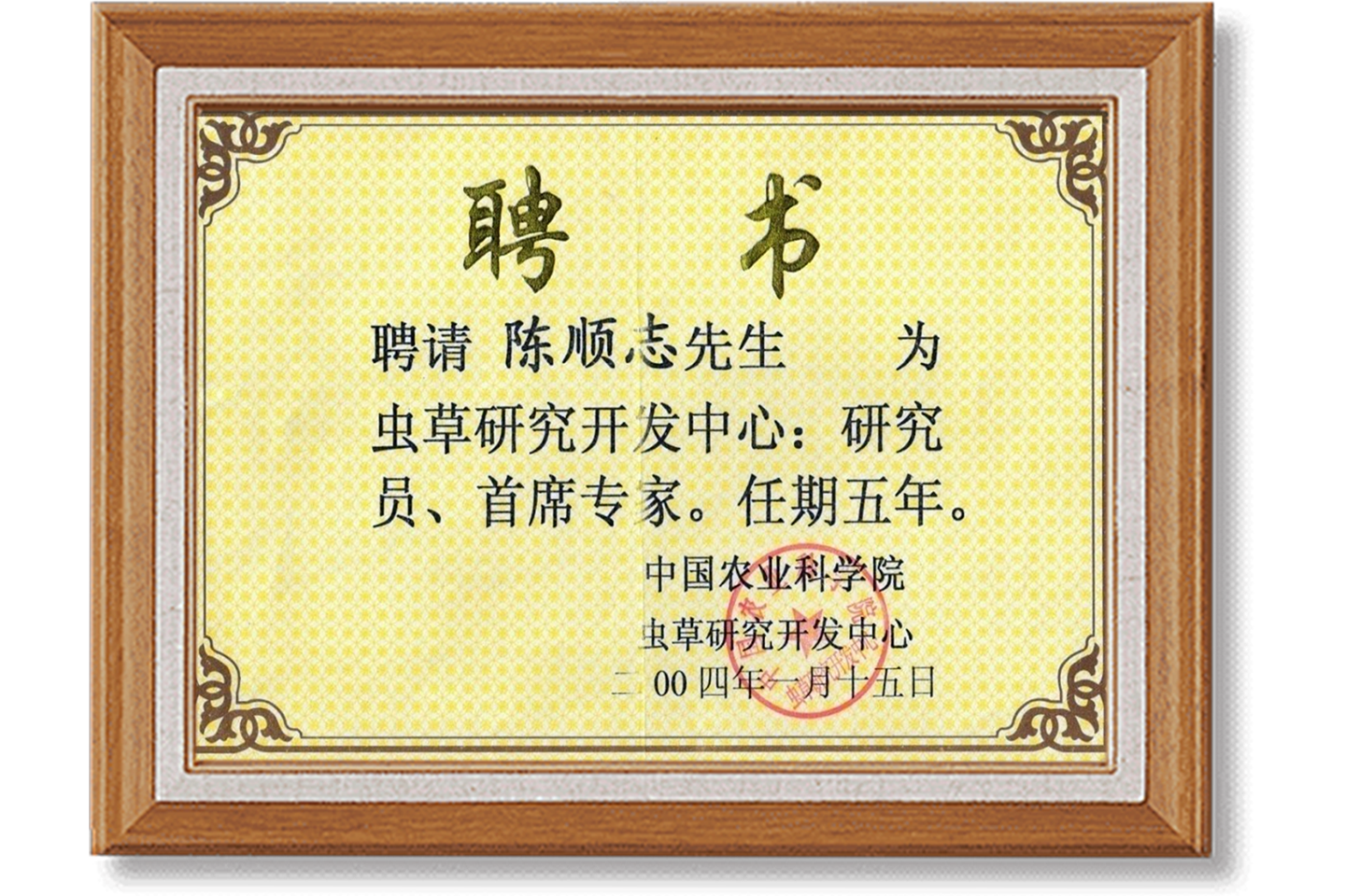 陈顺志教授受聘于中国农科院虫草研究开发中心研究员、首席专家
